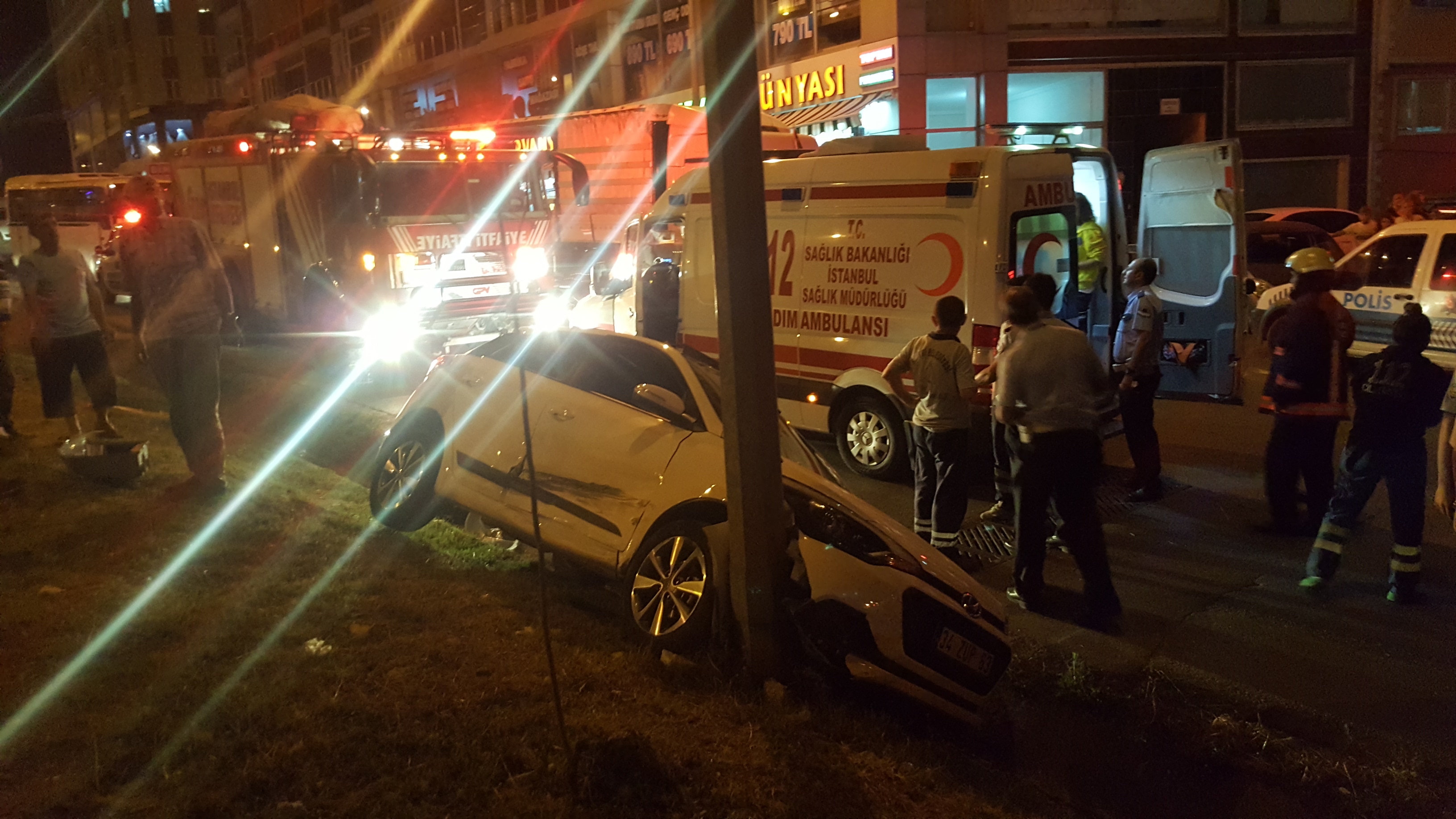 Silivri E5 yanyol da gerçekleşen trafik kazasında araba bariyerlere çarparak takla attı